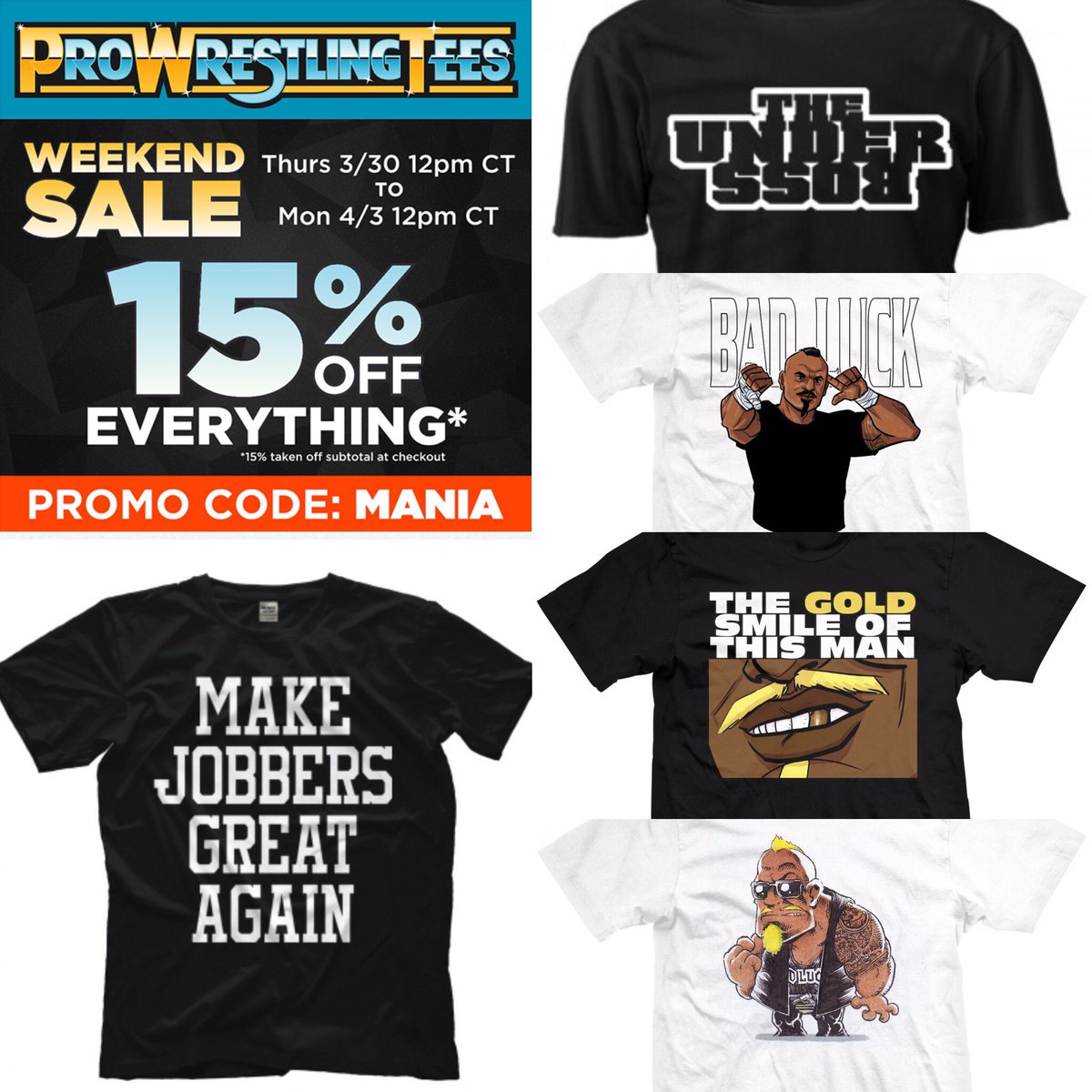 15% off all merch this weekend... 2017年03月31日 カテゴリ:TheUnderboss 15% off all merch this weekend only Promo code : mania https://t.co/XHRkSqCMZK https://t.co/AqWzUKms7D