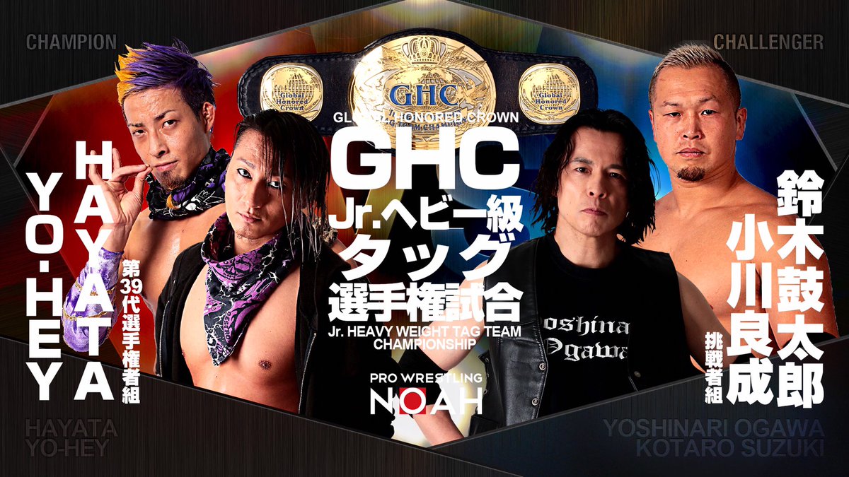 GHC NATIONAL CHAMPIONSHIP SUGI... 2020年04月30日 カテゴリ:プロレスリング・ノア GHC NATIONAL CHAMPIONSHIP SUGIURA vs NAKAJIMA 📅5月9日(土)22:00〜 📺#サムライTV & #DDTUNIVERSE 👑GHCジュニアヘビー級タッグ選手権 HAYATA&YO-HEY(第39代選手権者組) VS 小川良成&鈴木鼓太郎 (挑戦者組) 第39代選手権者組の2度目の防衛戦となります https://t.co/nXjF0tB7f7 #noah_ghc https://t.co/PNnxwhwuf7
