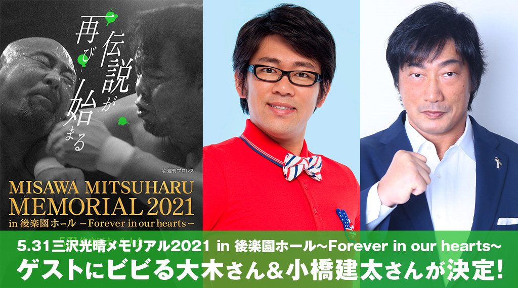 / #三沢光晴メモリアル のゲスト解説は… 【ビビる大木さん... 2021年05月28日 カテゴリ:プロレスリング・ノア / #三沢光晴メモリアル のゲスト解説は… 【ビビる大木さん&小橋建太さん】に決定🕊✨ \ 「三沢光晴メモリアル 2021 in 後楽園ホール ~Forever in our hearts~」 📺5月31日(月)18:00~ ABEMA格闘CH.生中継! https://t.co/5AaPLOrozG #noah_ghc #ノア放送 https://t.co/4bzuQByOiY