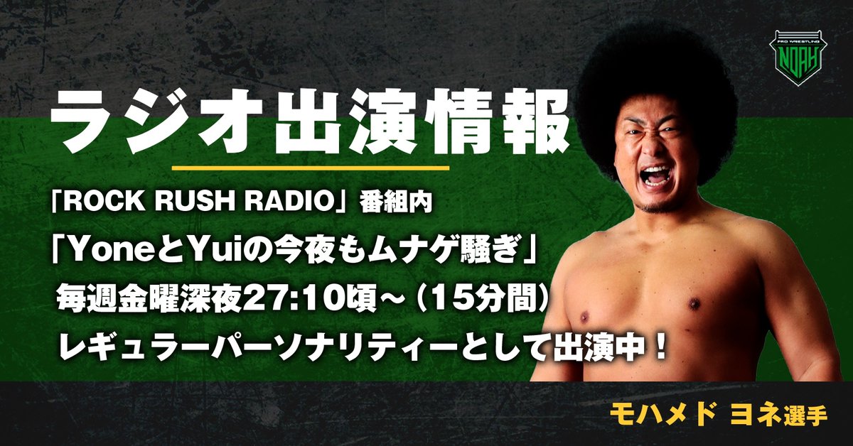 / 📻今夜‼モハメド ヨネ選手のレギュラーラジオ放送‼ \ ... 2021年05月28日 カテゴリ:プロレスリング・ノア / 📻今夜‼モハメド ヨネ選手のレギュラーラジオ放送‼ \ ■ラジオ日本 『YoneとYuiの今夜もムナゲ騒ぎ』 ■毎週金曜 深夜27:10頃~(15分間) ※「ROCK RUSH RADIO」番組内 ※radikoも対応 ■出演:モハメド ヨネ、藤沢優衣(Teen's Heaven) ✉募集中 https://t.co/9k9XwbBTYq #noah_ghc https://t.co/v12QmeFTWp