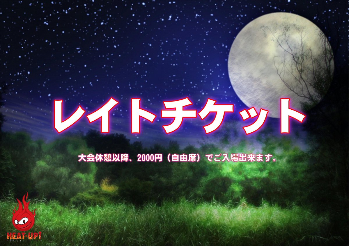 4.19HEAT-UP新百合ヶ丘大会より、大会休憩後より来場... 2019年03月30日 カテゴリ:TAMURA★4.7 パワフルタッグリーグ☆2019公式戦 ベースメントモンスター 4.19HEAT-UP新百合ヶ丘大会より、大会休憩後より来場出来る「レイトチケット」を販売致します。料金は2000円(自由席のみ)。第1試合から間に合わなくてもセミファイナル、メインは見れる!仕事で間に合わない!そんな方は是非こちらのチケットを活用下さい。 #heatuppw #パワフルタッグリーグ https://t.co/I4OjsXP3id
