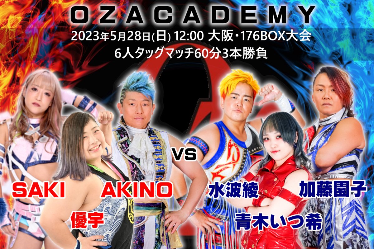 いよいよ明日は5.28大阪176BOX大会! ■メインイベ... 2023年05月27日 カテゴリ:OZアカデミー女子プロレス・オフィシャル いよいよ明日は5.28大阪176BOX大会! ■メインイベント:6人タッグマッチ60分三本勝負 AKINO&SAKI&優宇 vs 加藤園子&水波綾&青木いつ希 https://t.co/FDwY70Ukwp #OZアカデミー https://t.co/DNUKCwJDKL