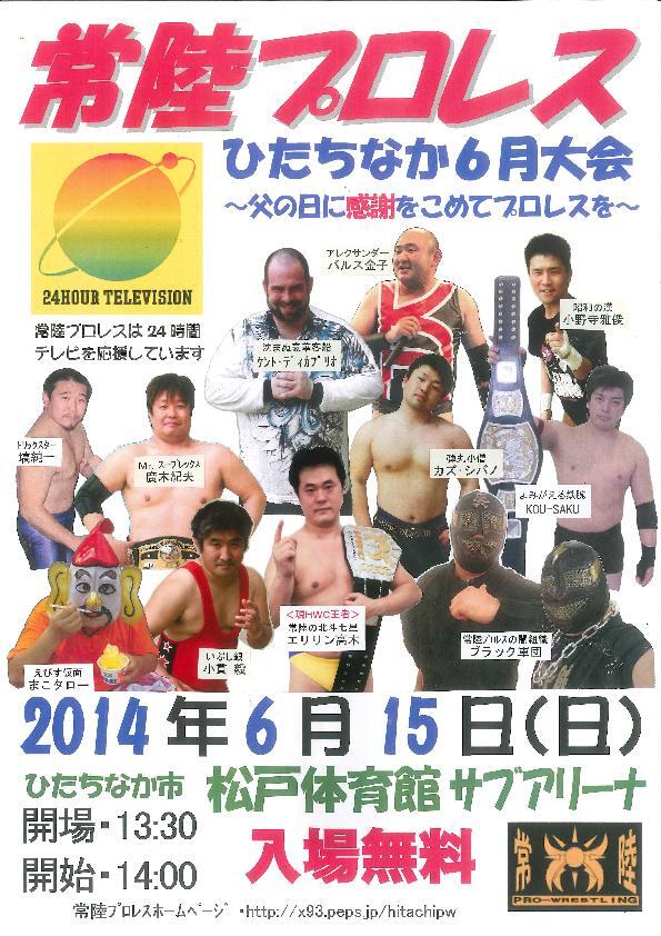 常陸プロレス茨城県ひたちなか市松戸体育館大会 6/15(日)... 2014年06月02日 カテゴリ:常陸プロレス(公式)6/15ひたちなか大 常陸プロレス茨城県ひたちなか市松戸体育館大会 6/15(日)父の日に感謝をこめてプロレスを 開場13:30開始14:00 http://t.co/I2WuMSgKXM