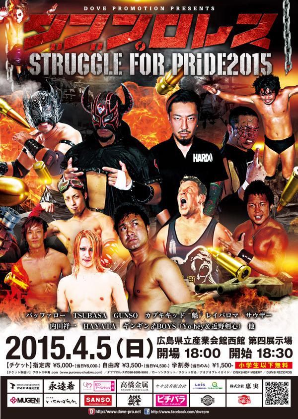 2015.4.5「STRUGGLE FOR PRIDE 20... 2015年03月05日 カテゴリ:ダブプロレス公式 2015.4.5「STRUGGLE FOR PRIDE 2015」 広島大会詳報! http://t.co/Y209wR7gDf #ダブプロレス http://t.co/a0feSeRN7f